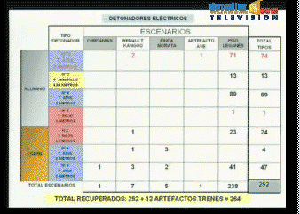 numeraciones encontradas en aquéllas, la cantidad de explosivo se había