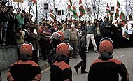 de ETA que aguardan la llegada de De Juana para homenajearle, ayer, en San Sebastián.