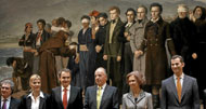 El ministro de Cultura. César Antonio Molina, Sonsoles espinosa, el presidente José Luis Rodríguez Zapatero, los Reyes y el Príncipe felipe posan bajo el cuadro 'El fusilamiento de Torrijos' (Antonio Gisbert, 1888), ayer, en la inauguración de la ampliación del Prado. El lienzo escenifica la ejecución de los liberales ordenada por Fernando VII. (Foto: Kike Para)